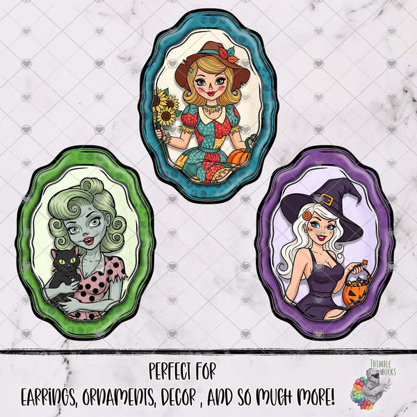 Halloween Pinup Girl Oval Frame Design Bundle
